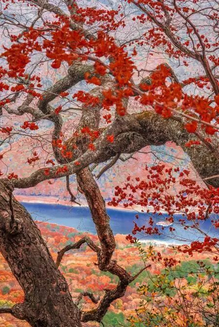 秋红有如迷阵旗幡,密密匝匝,层叠相掩,难辨深浅。假如飞身坠落,也许会是一张巨大蹦床?抑或一方更美天地?
