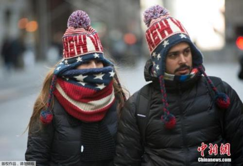 图为当地时间1月2日,纽约街头裹的严严实实的行人。