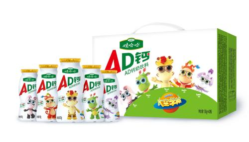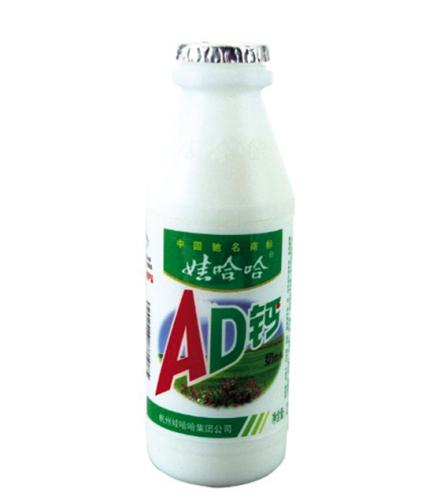1996年,历经数年研制的娃哈哈AD钙奶横空出世,在牛奶中加入了儿童成长所需的钙,还添加了维生素D、维生素A帮助钙质吸收。酸酸甜甜的味道一上市就受到了家长和小朋友们的欢迎。1997年,AD钙奶的销量就达到了10.7亿瓶,在同期快消产品中有着遥不可及的地位。不知道有多少人记得这“第一代”包装的AD钙奶呢?标志性的绿色,瓶身很简洁,娃哈哈的标志——萌萌的胖娃娃放在瓶身上特别显眼。不过,这个包装如今已成为历史。