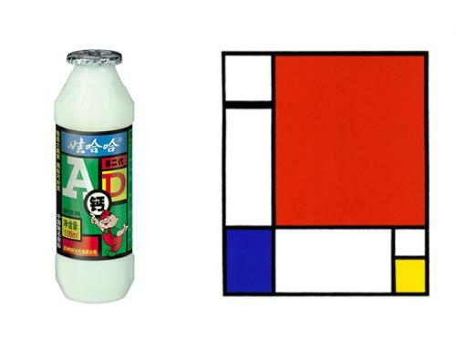 这款迷你版AD钙奶推出也有将近二十年,依旧是以经典的绿色为底色,配上暖色系的红色块、黄色块撞色,鲜艳却一点都不“辣眼睛”,反而有一种平衡的和谐感。其实,这款包装设计的灵感来源于几何抽象画派的前驱蒙德里安的经典画作《红黄蓝构图》。即便是现在看来,这瓶迷你款的AD钙奶也依旧很有复古的时尚感。之所以说它迷你,是因为每一瓶只有100g,对于小朋友来说,不多不少,对于大朋友们来说,简直可以“秒喝光”了。如今,这款包装也依然在部分地区有售,比如广西。