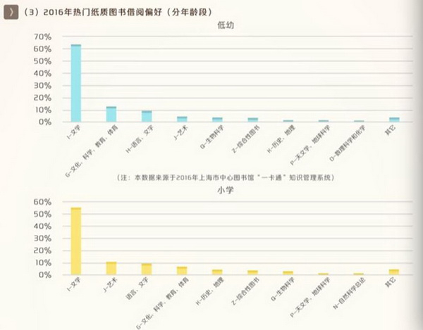 近日,上海少年儿童图书馆发布了首份《上海市少年儿童阅读报告》。统计2016年上海少儿馆用户的借阅记录中发现,最受欢迎的热门图书当属文学类,占60%-70%,自然科学类阅读量相对较低。