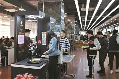 机器识别饭菜计算价格,学生用校园卡或手机支付,大大提高了效率。