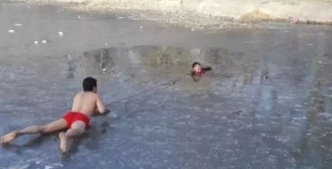 ▶1日,甘肃金昌一儿童不慎落入冰窟,冰层较薄,援救艰难。市民薛彦喜自告奋勇,脱去外衣匍匐在冰面和民警一起施救。孩子目前已脱离危险。