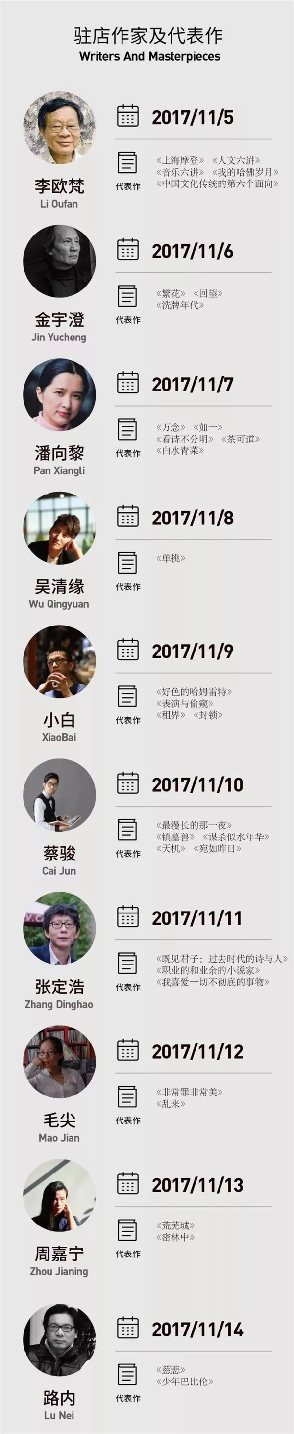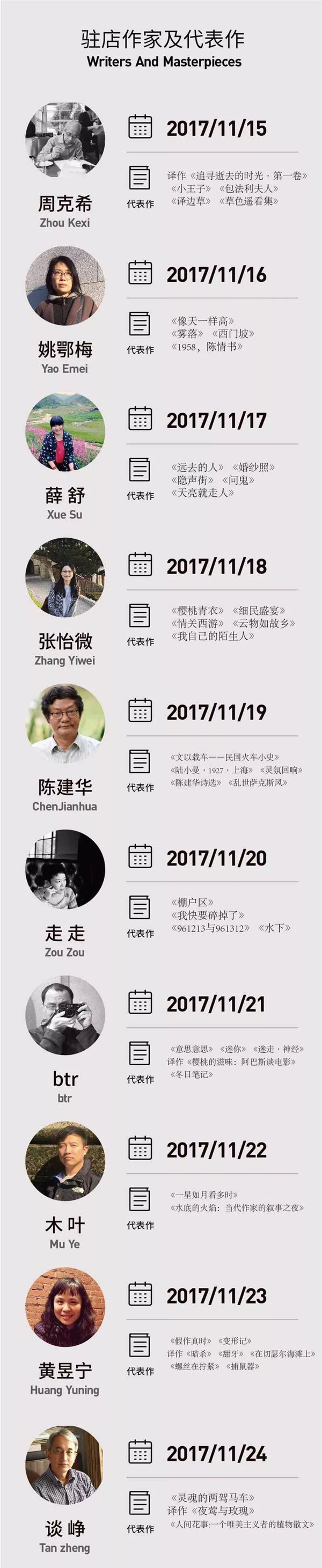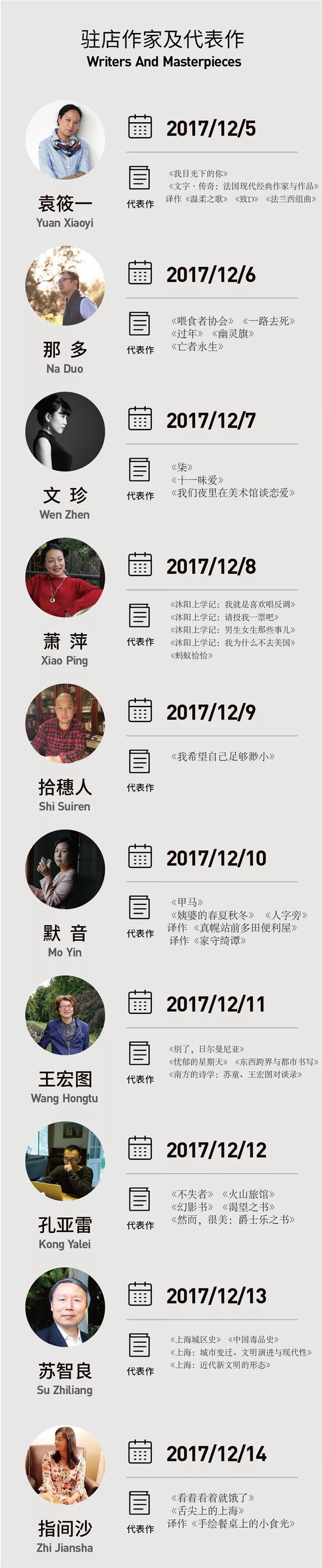 继2018年元月3日“思南书局·概念店”闭幕之后,思南公馆将特别策划思南书局系列纪念物的展览,为公众展出60天以来“思南书局·概念店”的60位驻店作家签名书籍、书房小物、作家肖像照片、作家给思南书局的寄语、读者留言、书局内小型作家特展资料、社会媒体报道,以及思南书局概念店设计师手稿和3D打印模型、幕后花絮、活动视频等众多珍贵内容。
