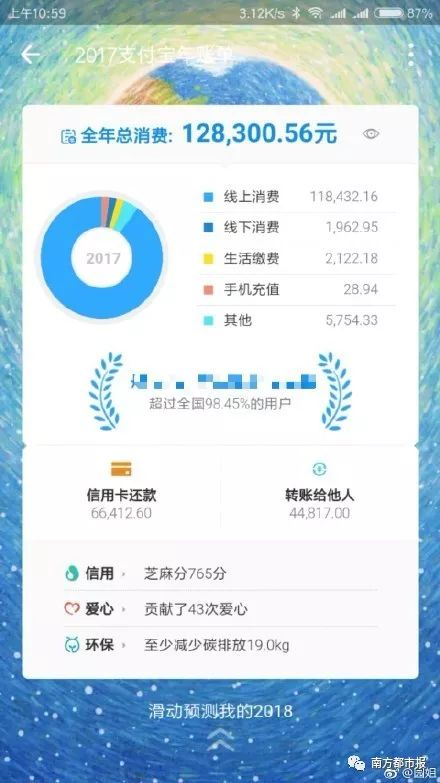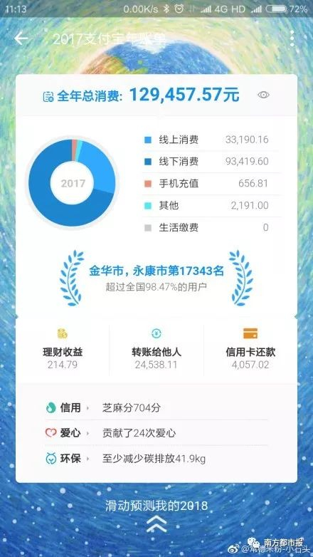 支付宝2017年度账单来了!沈阳人你是否有一种不知不觉被掏空的感觉……