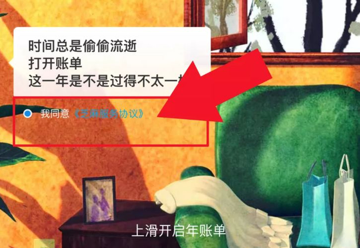 提到“隐私”,不知道大家发现没有,账单第一页有一行小字:“我同意芝麻服务协议”。在打开账单时,这个选项是自动勾选的。