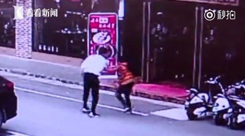 你的女朋友掉地上了!女友吵架耍赖自摔,男友无奈牵手