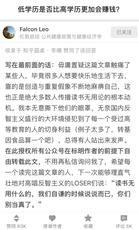可是为什么这样的问题在中国社会还能引起争议?换句话说,为什么这年头网上越来越多这样带节奏的人,大肆地鼓吹读书无用论?
