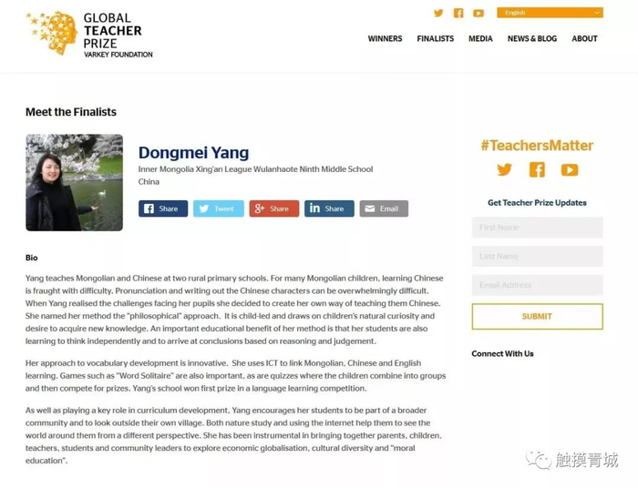 成功进入“2018全球教师奖”前50名!