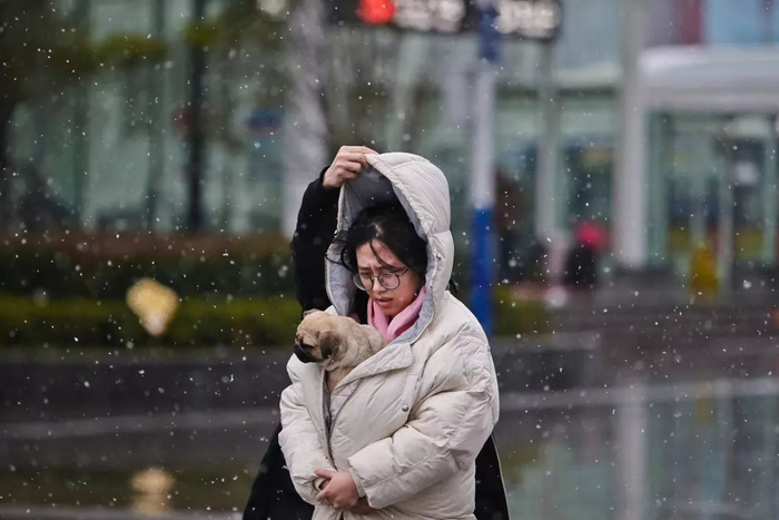 合肥街头雪花纷飞。江淮晨报 李福凯 摄
