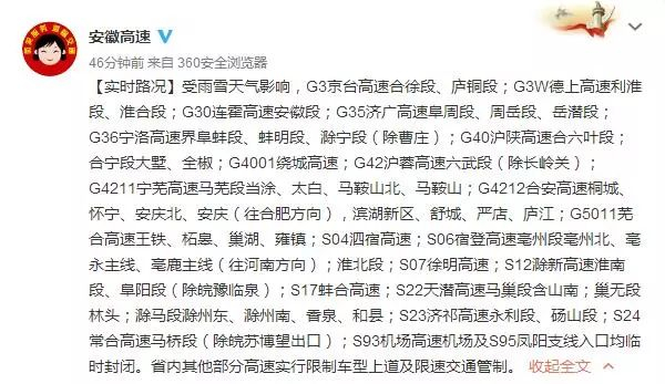 @安徽高速发布高速最新消息: