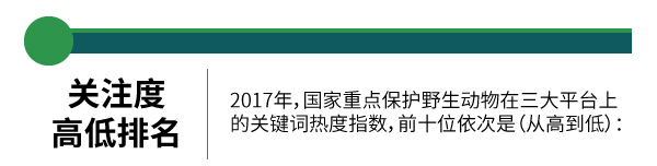 2017年,国家重点保护野生动物在三大平台上的关键词热度指数,前十位依次是(从高到低):