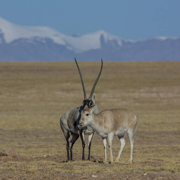 藏羚羊,国家一级保护动物。公藏羚羊与母藏羚羊 可可西里管理局布琼、秦晖 图