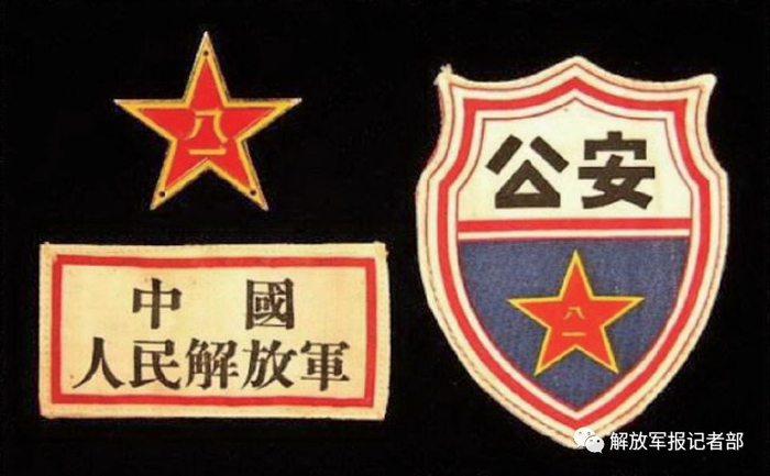 图为建国初期的公安部队,佩戴“中国人民解放军”胸章和“公安”臂章。