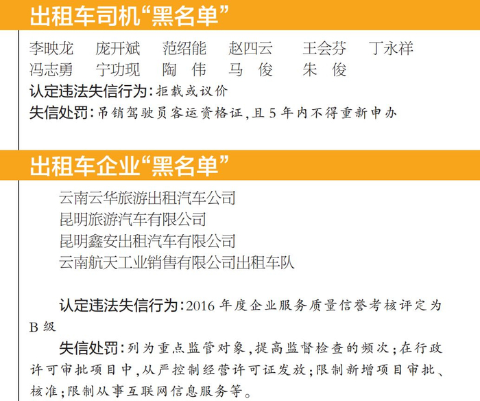 日前,昆明市出租汽车管理局根据《办法》公布了首批昆明市出租汽车行业信用“红黑名单”。