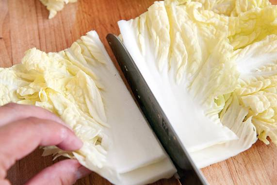 白菜洗净,斜切成片。