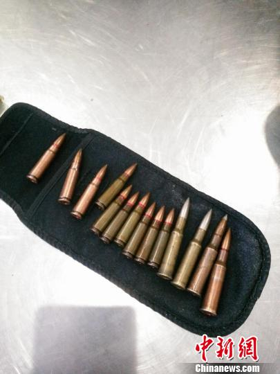 图为二连浩特海关工作人员查获14发子弹。 战智慧 摄