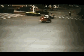 当左转信号灯亮起,因为大货车起步加速较快,结果直接将电动车撞倒,骑电动车的妇女被撞倒在地连人带车被推行数米后才停下,所幸并无大碍,但是后座上的六岁小女孩被甩到货车下,其左腿被碾压倒地不起。