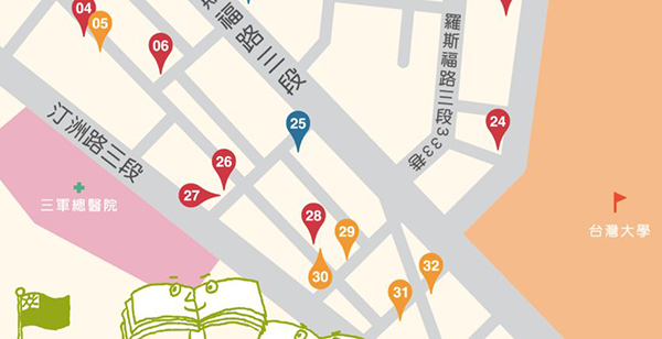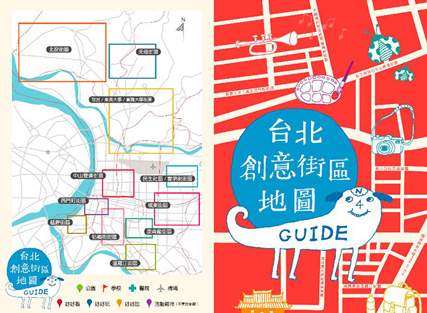 第五份是网上的《台北创意街区地图》,这份地图收录了温罗汀、牯岭街、康青龙、北投、大故宫、城东、民生社区/富锦街、艋舺、天母、中山双连、西门町等11个创意街区地图,每个街区的地标标注得非常清楚,可以下载到手机上,随时备查。我保留了温罗汀、牯岭街两份地图备用。