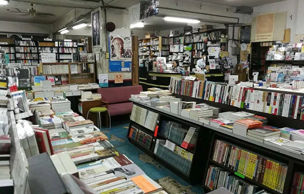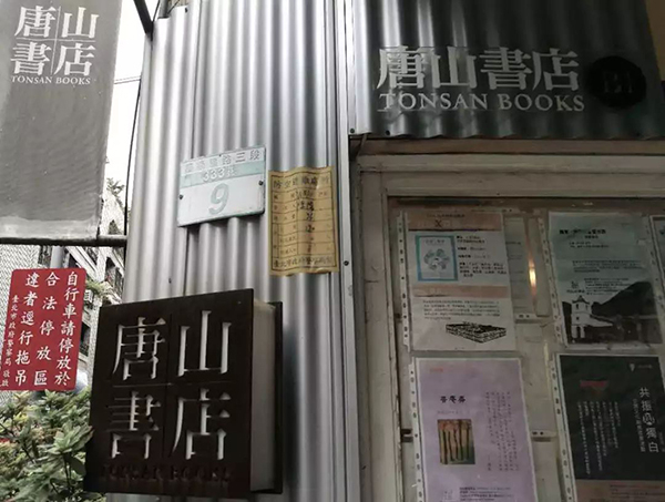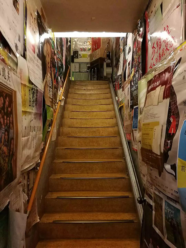 斜对过巷口是著名的唐山书店,这家书店在台北书店中有特殊意义,他们是出版社也是书店,在知识禁忌时代,唐山销售西方人文思想读物和各类遭禁书刊,是台北读书人的重要据点,可以说是台北独立书店的典型代表。这样一家重要的书店,就在一个暗黑的地下室,循着一个黑幽的楼梯下来,楼道里贴满各种宣传海报和废旧纸张,要不是有心理准备,可能都不敢冒然进入这样一个幽暗的地下室。