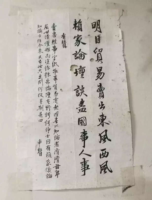 这幅写着:明目贸易卖出东风西风,赖家论坛谈尽国事人事