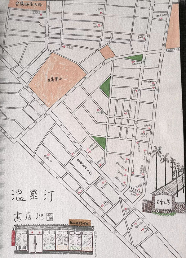 温罗汀书店群在台湾大学和台湾师范大学之间,温州街、罗斯福路、汀州路和新生南路所围成的街区。早在1928年日治时期,台北帝国大学建校,这片区域逐渐形成了一个文化与学术混合空间,有很多书店、出版社、咖啡馆、教堂、艺文表演空间、NGO机构等。2005年,这片区域形成为温罗汀书店群,成为台北最重要的文化地标。