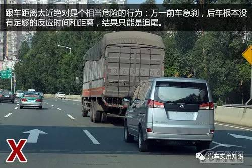 除了依照限速行驶外,与前车保持安全车距也是必须的。这个安全车距可以简单理解成与车速数值相当:当车速为100km/h时,安全车距为100米以上;当车速在100km/h以内时,安全车距不少于50米。若遇上雨、雪、雾等不良天气时,更加需要增加行车距离。只有保持安全车距,遇上突发情况时你才有足够的反应距离和时间。
