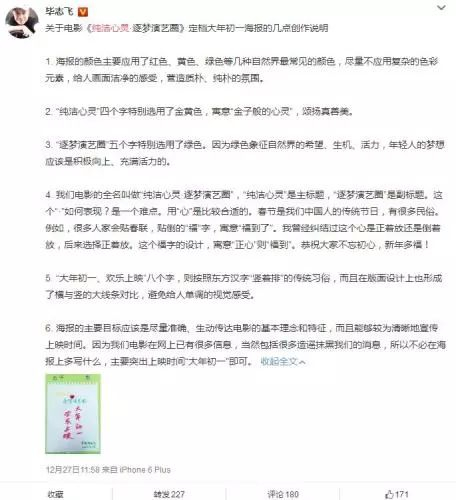 导演毕志飞对重新上映海报的解释。图片来源:毕志飞微博截图
