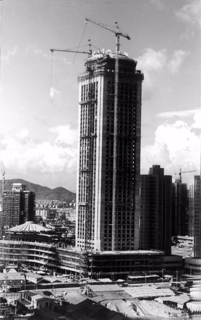 中国第一高楼——深圳国贸大厦封顶(1984.9.4),刘廷芳摄。
