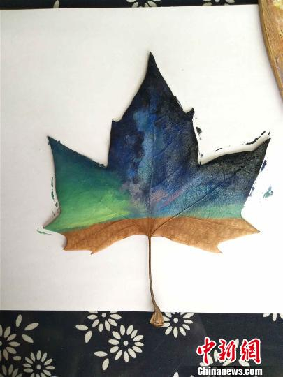 浙江海盐姑娘奇思妙想 将唯美星空绘在树叶上