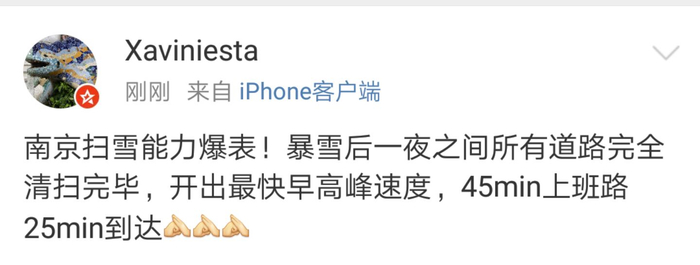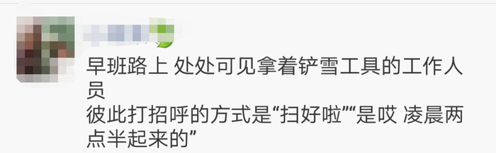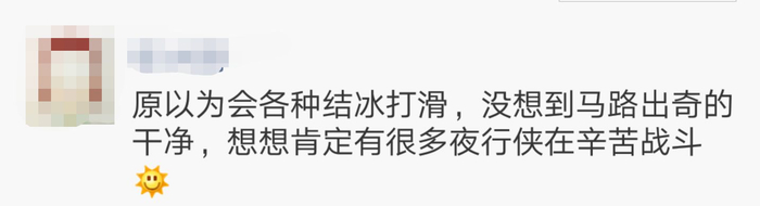 @快乐小橘子:今天怕路不好早,早早起来,早早出发…下楼发现路面都清理干净了!心里好暖…又是多少人的彻夜奋战!为大蓝鲸点赞!为默默付出的所有工作人员点赞!