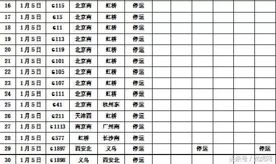 因雨雪影响 铁路南京南站5日有83趟高铁列车停运1月5日,龙虎网记者从南京铁路部门了解到,因雨雪影响,铁路南京南站83趟列车停运。持有以下乘车日期、车次车票的旅客,可自即时起至票面乘车日期后30日内(含当日)到车站退票窗口办理退票手续,不收退票费;在互联网购买车票接到停运通知短信且尚未换取纸质车票的旅客可在WWW.12306.cn铁路购票网站按有关规定办理全额退票手续。