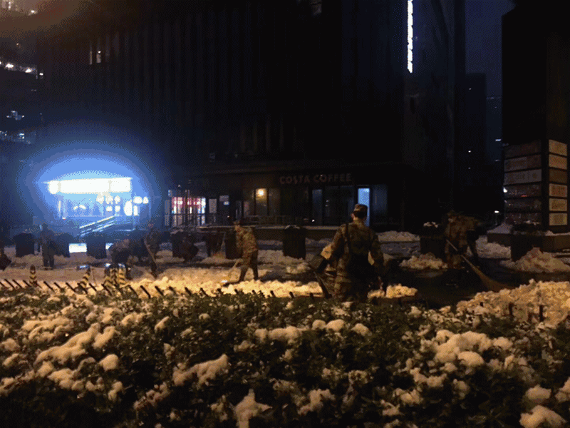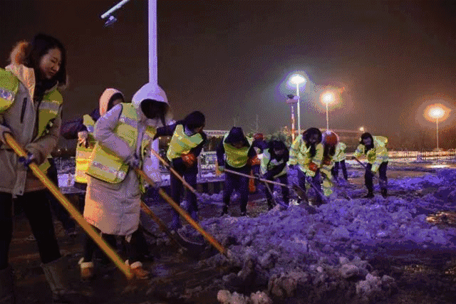 @青宁亦木:一出门就看到警察还是城管的,在铲雪,保洁也在扫地。昨晚担心的摔跤问题完全不存在!