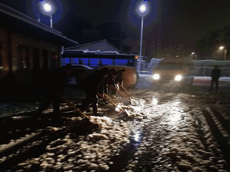 各车队突击队员正在不停地清扫站区的积雪,为第二天早上平安出行打下基础。