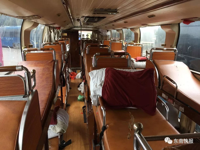 ▲长途卧铺客车内脏乱差