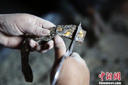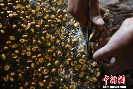 图为郑芝飞忙着剪糖。 姚峰 摄