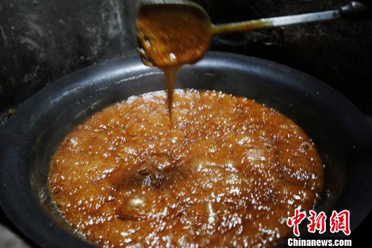图为边煎边加糖水。 姚峰 摄