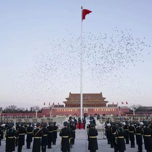 每月第一天升国旗增加号手和礼兵的迎旗环节。新创作《升旗号角》音乐,由军乐团8名礼号手在天安门城楼演奏;解放军仪仗队30名身着陆海空军礼服的礼兵在金水桥南侧列队,并行注目礼。