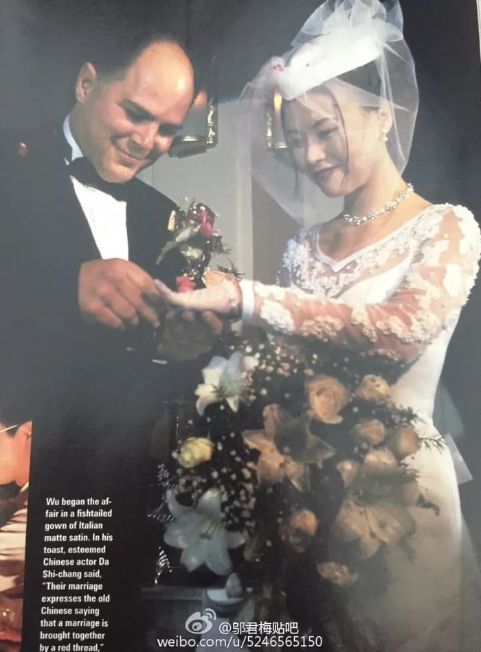 两年后他们结了婚,《People》杂志还派出记者全程跟踪,婚礼过程的描绘,占用了整整5个页面。并将邬君梅评为当年“全球风云人物婚礼”的第一新娘。