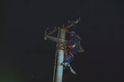 1月5日凌晨,兰州市轨道交通1号线一期工程西关十字站电力设施搬迁现场,30多名工作人员在-10℃的环境中,冒着凛冽寒风加紧施工。为确保正常交通秩序和居民日间用电,兰州倚能电力(集团)有限公司配电工程分公司将设施搬迁工作安排在深夜至凌晨。兰州倚能电力(集团)有限公司配电工程分公司负责人刘红伟介绍,此次轨道交通一号线西关十字站电力迁改工程涉及到西关变114翠英门线,涉及共计5000余户居民用电。为避免影响此路段正常的交通秩序和居民正常用电,倚能电力集团配电工程分公司与兰州供电公司及兰州市轨道交通有限公司密切配合,根据西关十字站特殊的地理位置制定了详细施工方案和停电计划,并将横跨轨道交通一号线西关十字站出入口和风亭的10kV架空线路停电时间安排在2018年1月5日凌晨0时-6时进行,努力将居民生产生活的影响降到最低。