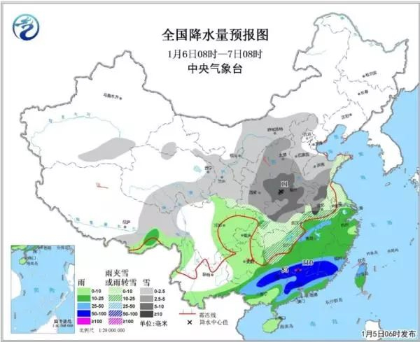 气象监测显示,5日夜间至7日,新一轮雨雪又将来袭,陕西、山西、湖北、河南等地部分地区又将出现中到大雪。9日前后最低气温0℃线压至南岭一带。