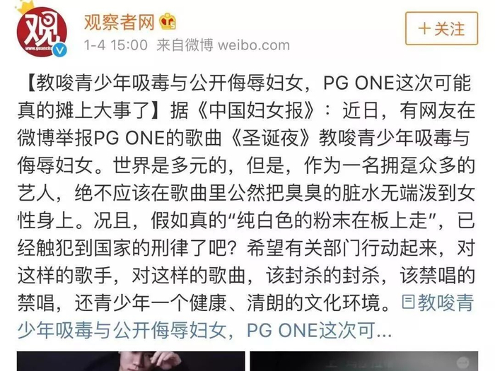 PG ONE的这首歌疑似教唆吸毒,虽道歉且下架,可情况并不那么简单