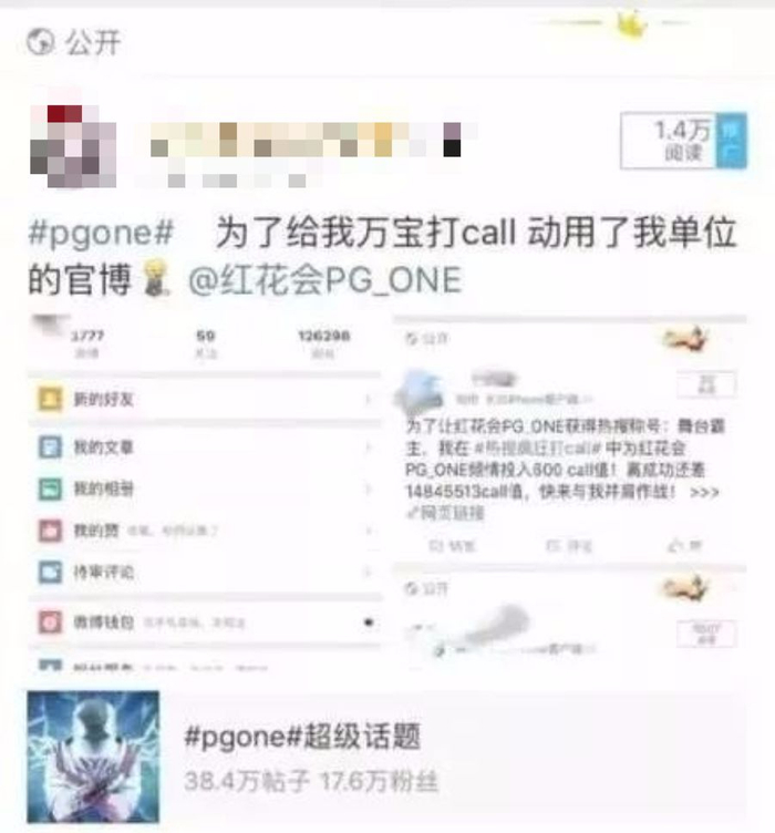 也有忠心粉丝甚至动用了单位官博给PG ONE支持。