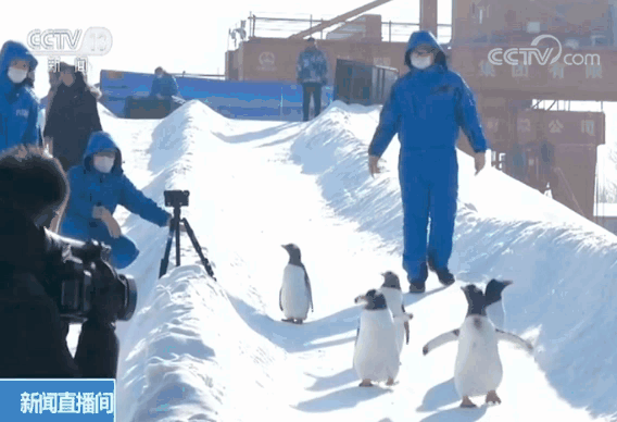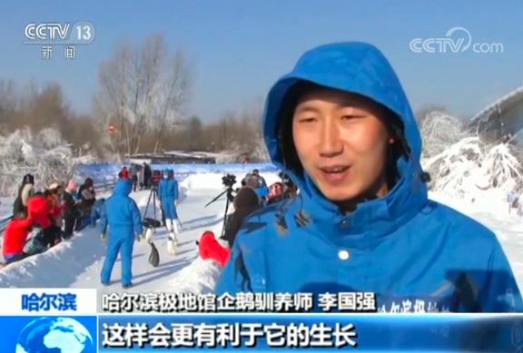 哈尔滨极地馆企鹅驯养师 李国强:小企鹅来到户外更有利于它的生长,提高它的耐寒能力,对它的抵抗力都会有很大帮助。