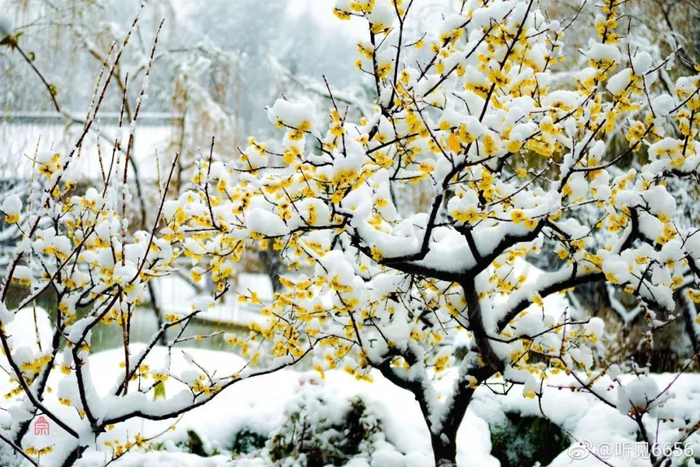 图/视觉中国 一月四日,南京大雪,明孝陵景区的腊梅傲雪盛开。