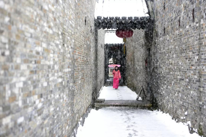 图/视觉中国 一月四日,河南郑州,雪中,古装女子。