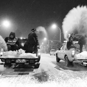 水的冰点是0℃,高于这个温度,冰就会化成水,低于这个温度,水就会结成冰。如果水溶液中盐分的含量超过了20%,那么这个溶液的冰点就会降低到-16℃。雪即使是在温度高于0℃的环境中,也不容易化成水,在雪表面撒上盐之后,只要雪稍微融化一点,盐就能将雪水吸收并形成盐水溶液,因为盐水溶液的凝结点比水要低很多,所以能在同样的温度下不容易凝结成冰,在这样的条件下,雪就会不断地被融化,道路的安全性也就大大提高了。工作人员正是利用了这一物理特性,所以用盐水来化积雪,防结冰。