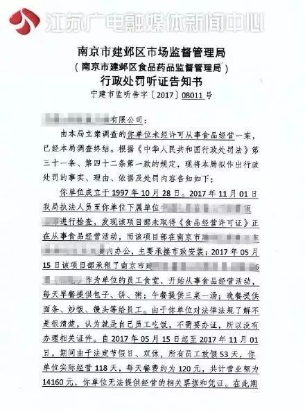 不料到了去年11月,建邺区的市场监管局上门进行检查,要求柳先生等人不得在出租房内做饭,并在去年12月21日开出了一份《行政处罚听证告知书》。《告知书》显示,柳先生等人搭伙做饭属于"未经许可从事食品经营的行为",并认定其违法收入为14160元,加上十倍的罚款,总共要处罚15万5千多元。