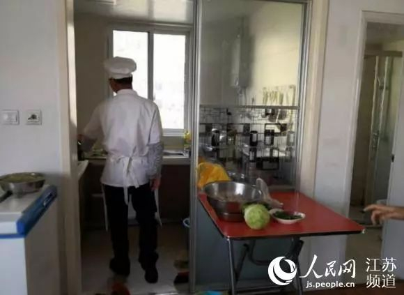 ▲执法人员在涉事单位承租住宅内发现有厨师专为员工提供用餐服务(图片来源:人民网-江苏频道)