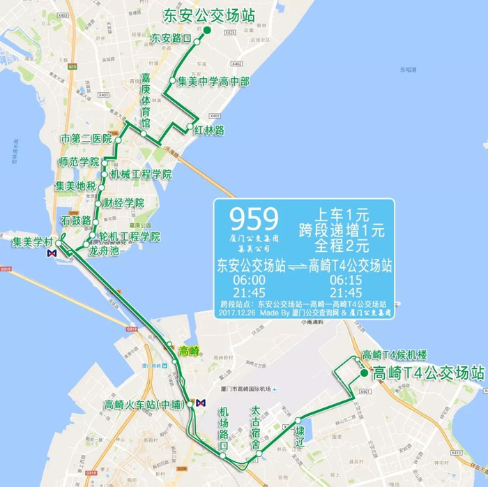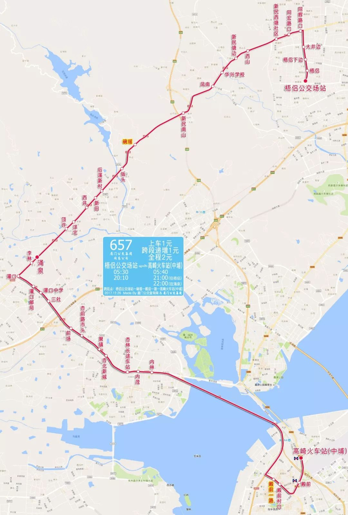 增停站点:东安公交场站(新设站点)、东安路口(新设站点)、红林路(新设站点)、集美学村(新设站点)、机场路口、太古宿舍、埭辽、高崎T4候机楼(往东安方向)、高崎T4公交场站。